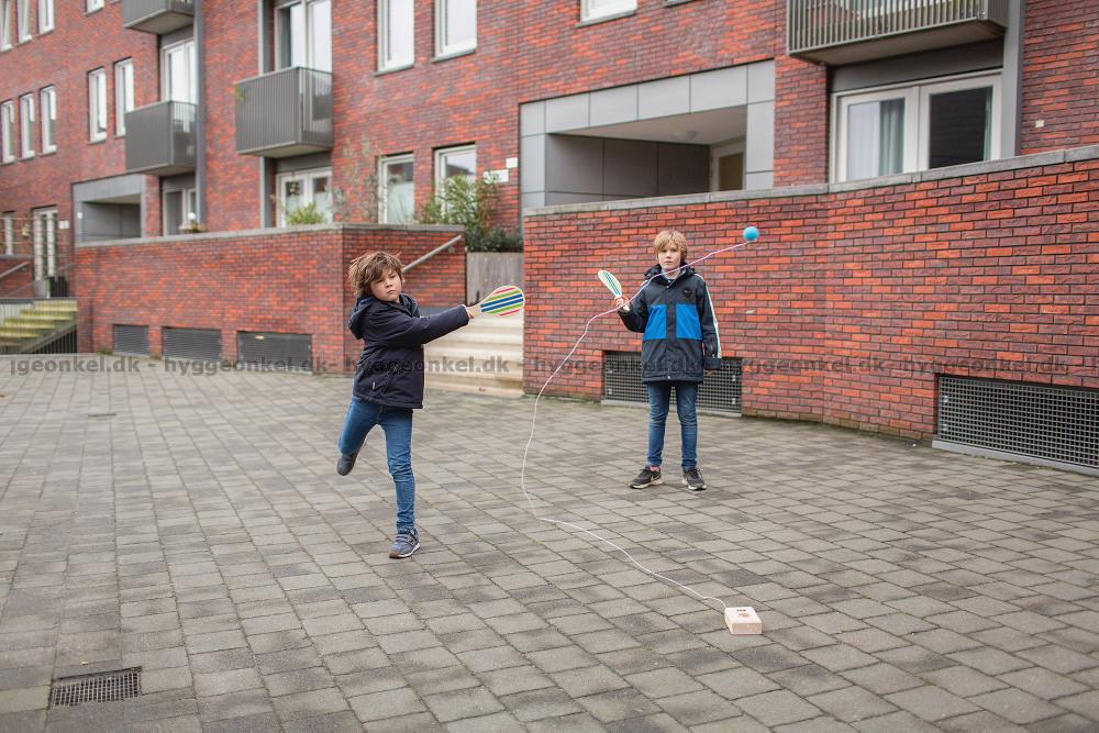 Bollen är fastbunden i en träkloss. Slå till bollen och se hur länge du kan hålla den i spel.
