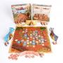 The game is played on a board divided into hexagonal spaces. One side of the board has a map with pre-printed terrain for the first match between 2 players. The other side of the board has an empty map. This can be prepared for various custom scenarios.