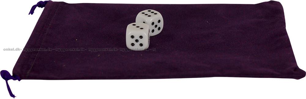 Här får du en påse i lila sammet för förvaring av dina tärningar - varken mer eller mindre.