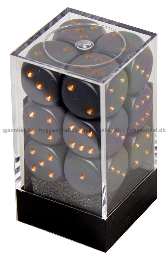 12 fina tärningar från den tyska tillverkaren Chessex. Tärningarna levereras i en praktisk förvaringsbox.