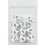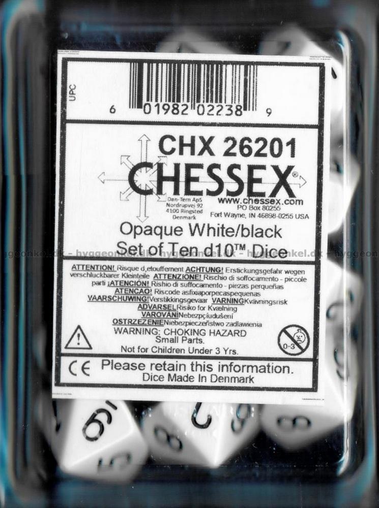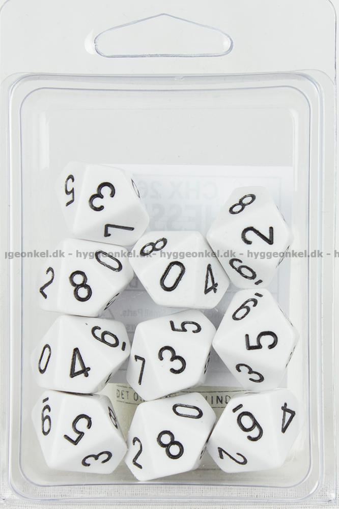 I denna ask hittar du tio stycken 10-sidiga tärningar.