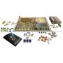 Spelbräde, miniatyrer i plast, marker i trä och marker i kartong.