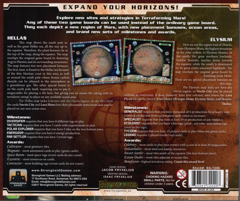 Expansionen innehåller två nya spelbräden. Elysium utspelar sig på motsatta sidan av Mars ekvator medan Hellas äger rum på Mars sydpol.