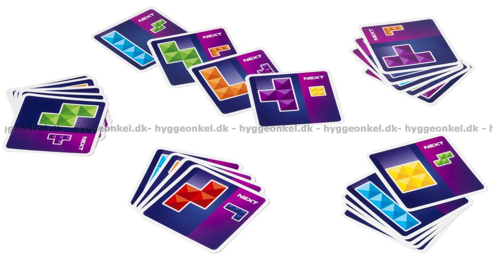Det kort som spelas visar också NÄSTA Tetris-figur som ska matchas. Vem är snabbast på att hitta ett matchande kort från handen?