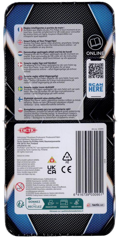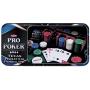 Här är setet för pokerälskaren. I metallasken hittar du spelkort, marker, regler och en filtduk som mäter 60 x 90 cm. Allt som behövs för att spela alltså!