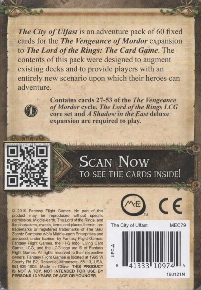 The City of Ulfast är en expansion till Lord of the Rings LCG. Du behöver ha grundspelet för att få glädje av den.