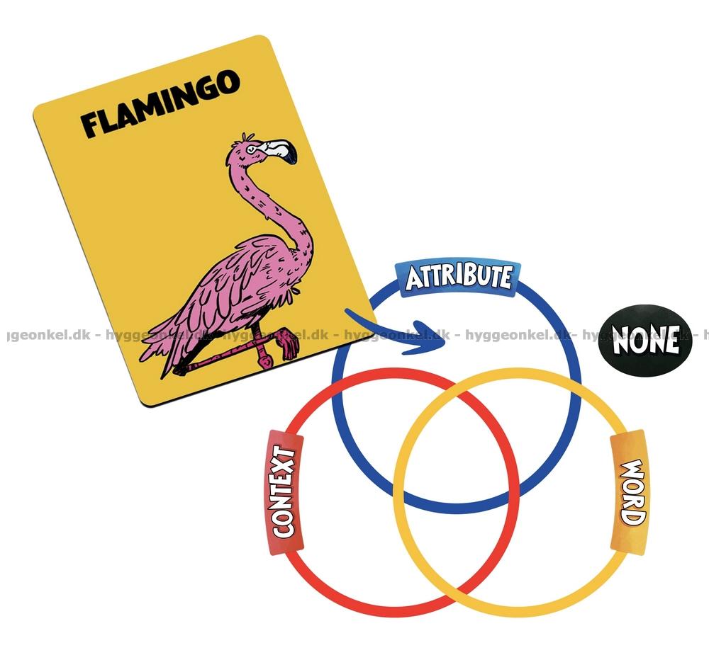 Varje kort visar ett "föremål", och varje ring representerar en dold regel baserad på antingen egenskaper, ord eller sammanhang.
