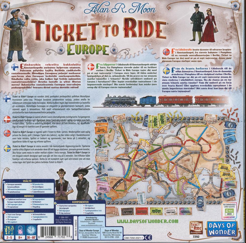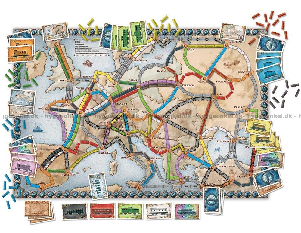 Spelet Ticket to Ride: Europe handlar kort sagt om att bygga järnvägslinjer från stad till stad i hela Europa. Ju längre rutter du kan bygga, desto fler poäng får du (mellan 1-21 poäng).