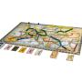 I asken finner du 1 stort spelbräde (ca. 50 x 80 cm), 5 poängbrickor, en mängd tågvagnar (och 15 stationer) i plast fördelat på 5 olika färger samt en stor hög tåg- och biljettkort. I tillägg finns naturligtvis spelregler på svenska.