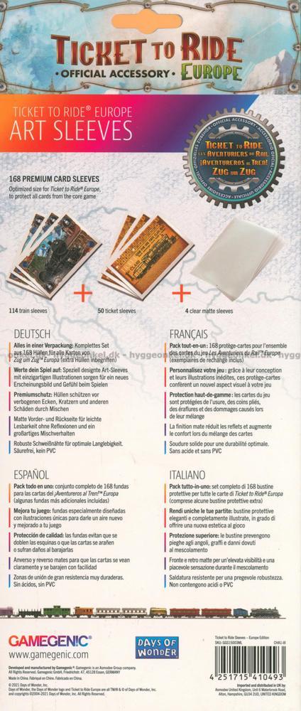 - Sleeves att använda för korten i Ticket to Ride: Europe
