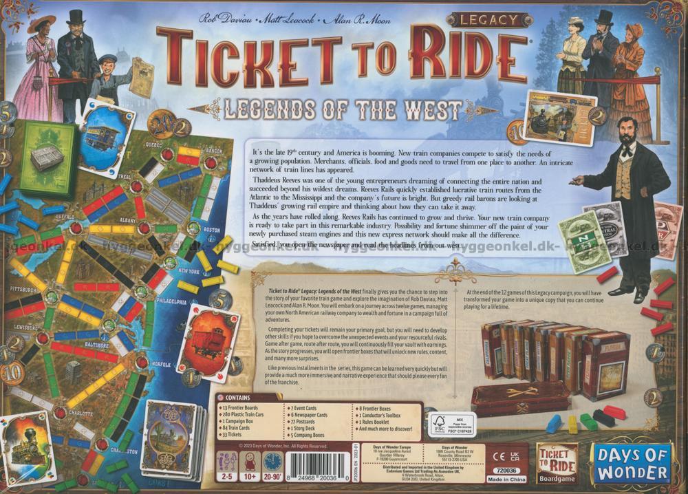I Ticket to Ride Legacy: Legends of the West får man möjligheten att utforska den vilda västern på en fantastisk resa genom USA:s historiska städer och ikoniska landskap. Man blir gripen av att bygga järnvägar och upptäcka nya destinationer samtidigt som man tävlar mot sina motståndare för att bli först med att nå sina mål.