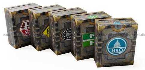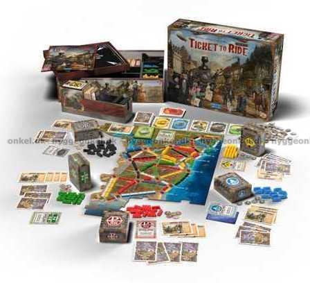 Spelområden, en mängd tågvagnar i plast, olika kort – till exempel händelsekort, tidningskort, vykort och biljetter. Det finns också gränsbrädor och en mängd olika boxar, inklusive de boxar som behövs för att spela kampanjen.