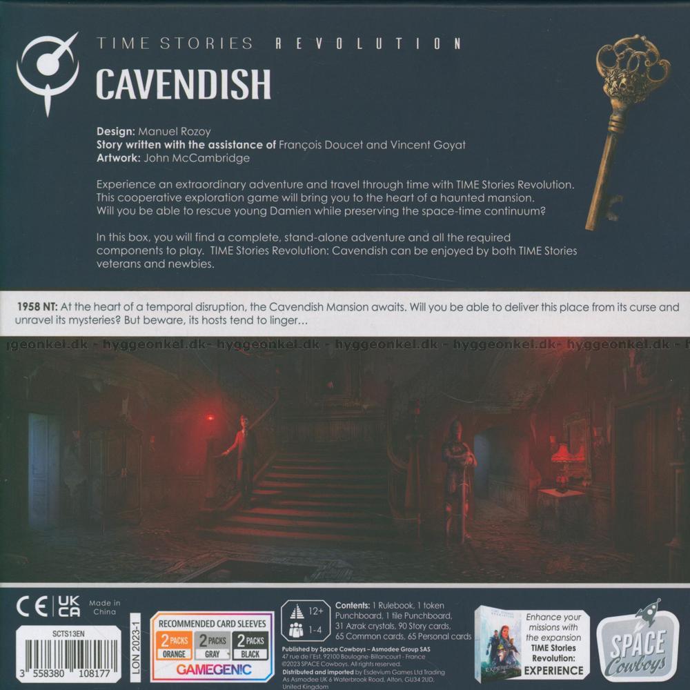 Cavendish är ett fristående spel i Time Stories universum där spelarna är tidsagenter för organisationen TIME, en organisation som tjänar mänskligheten genom att reglera tidsresor och se till att tidskontinuumet inte bryts.
