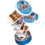 Timeline Mini: Events levereras i en fin, rund metallask. Asken mäter 9 cm i diameter och är 2,5 cm hög, så den tar inte mycket plats i väskan eller på spelhyllan.