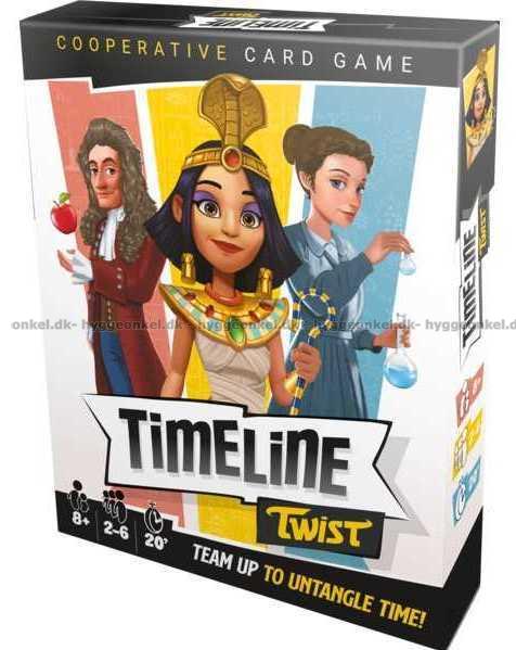 Timeline Twist har 100 unika kort, vart och ett med en speciell historisk händelse, och spelarna samarbetar för att placera dem på en tidslinje och tjäna poäng.