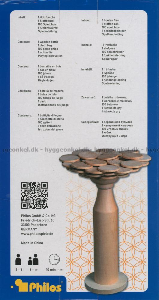 Målet med spelet är att stapla brickorna på träflaskan utan att någon faller ned.
