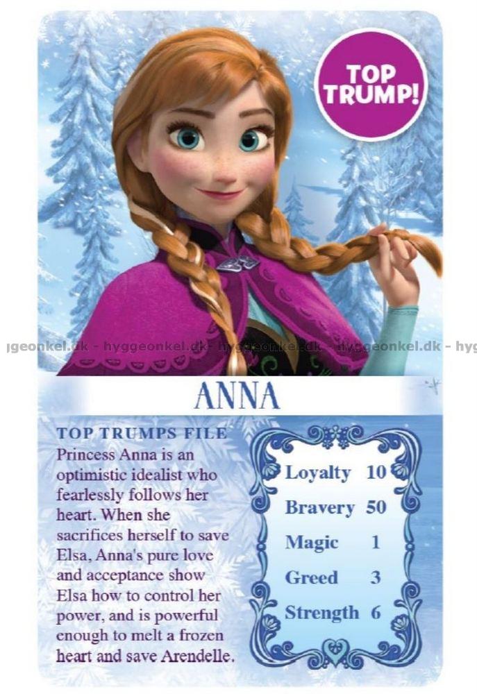Denna utgåva av Top Trumps handlar om karaktärerna i Disney-filmen Frost (Frozen).