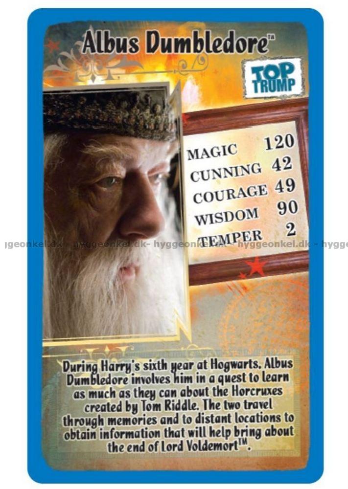 Denna version av Top Trumps har tema Harry Potter och inkluderar alla de kända figurerna från detta magiska universum.