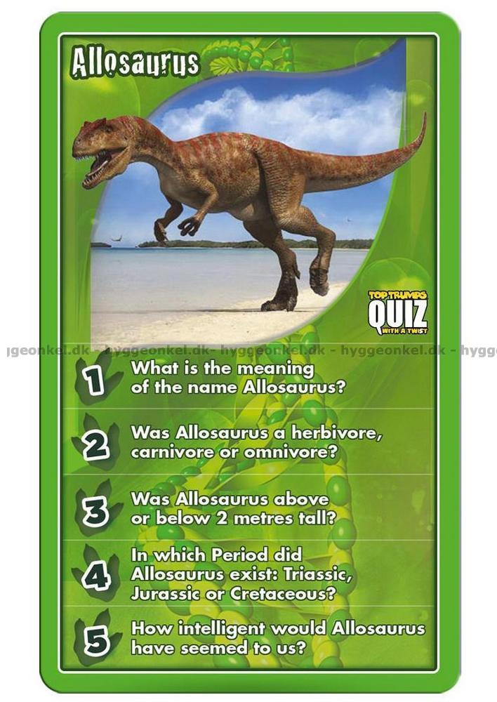 I denna version av Top Trumps Quiz tävlar ni med er kunskap om dinosaurier.
