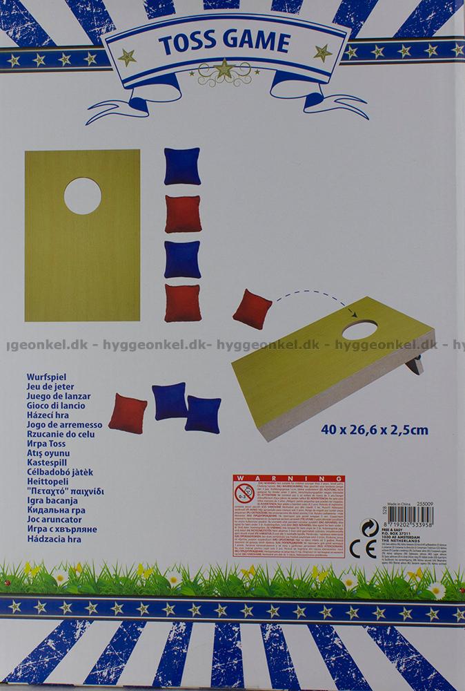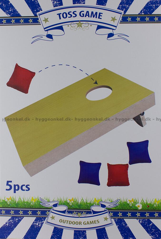 Kasta med ärtpåsarna och se om du kan pricka precis i hålet på plattan.
