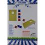 1 bräde i trä som mäter 39 x 26 x 2,5 cm och 4 ärtpåsar (2 blå och 2 röda).