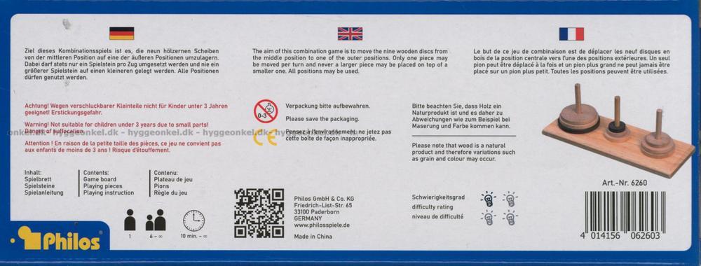 Tornet i Hanoi kan spelas med upp till 9 ringar. Ju fler ringar du spelar med, desto svårare och mer tidskrävande blir spelet.