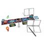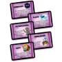 En hög med kort, brickor, marker, blyertspennor och timglas.