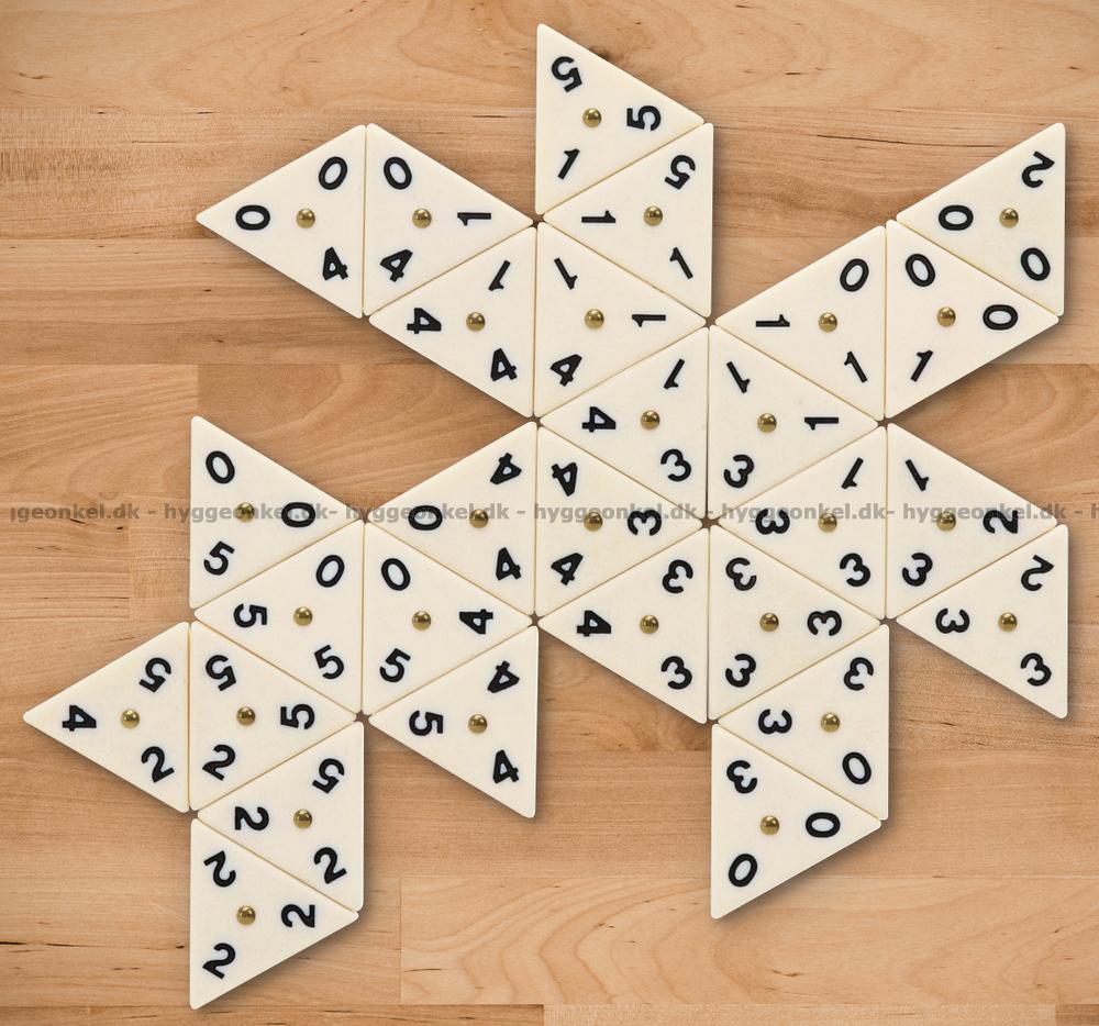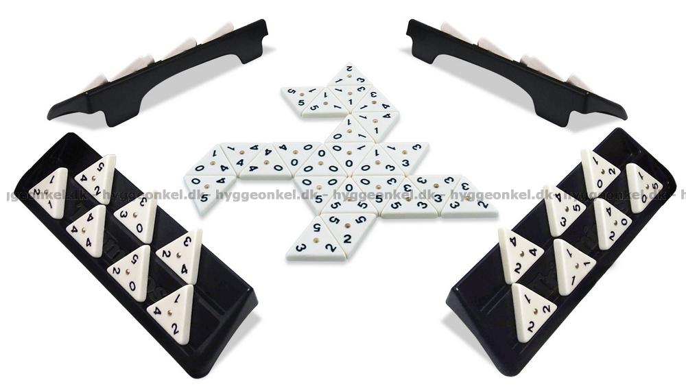 Alla brickor i spelet är trekantiga. Det betyder att det finns betydligt fler kombinationsmöjligheter än vad som finns i Domino.