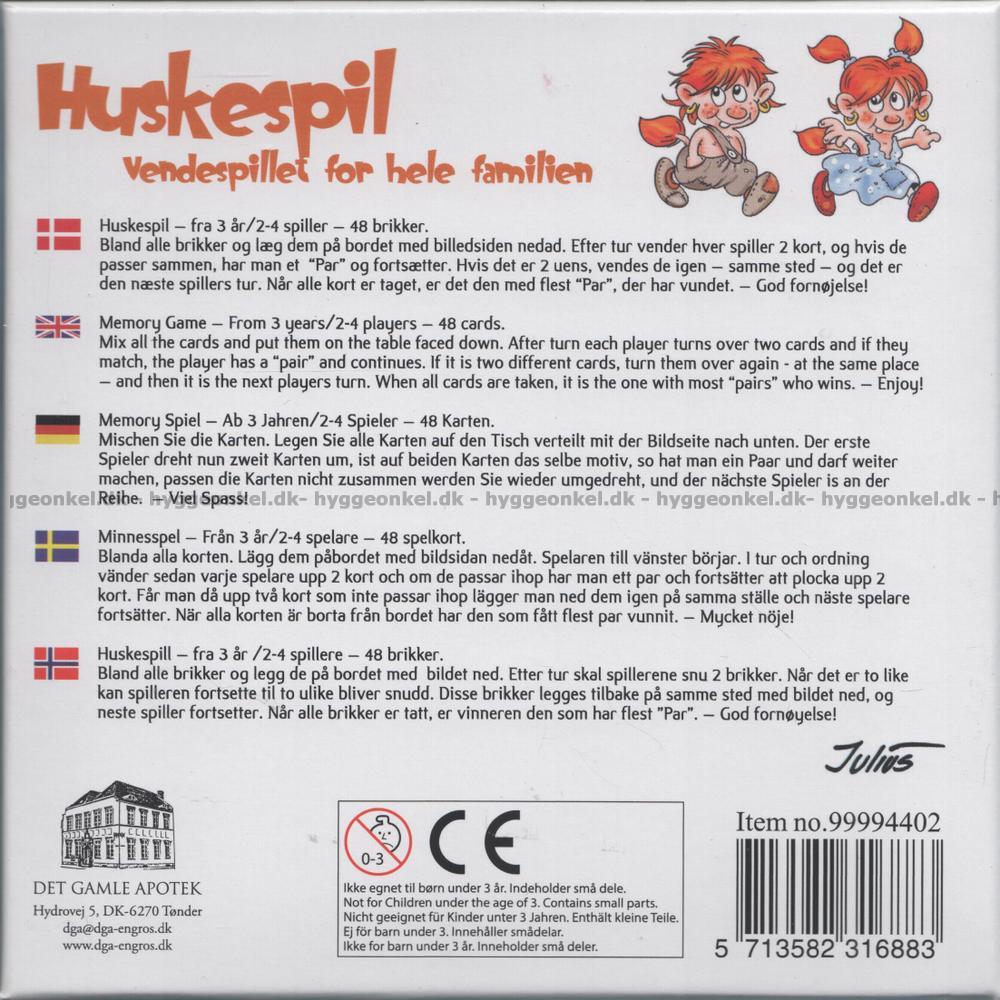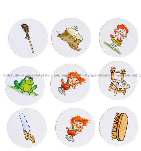 Asken innehåller 48 runda brickor, det vill säga 24 par.