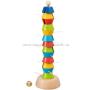 I denna version av klassiska Klumpeduns börjar man med att stapla byggklossarna till ett torn. Det finns en metallpinne på vilken klossarna ska staplas.