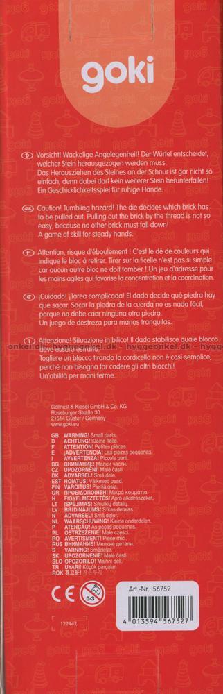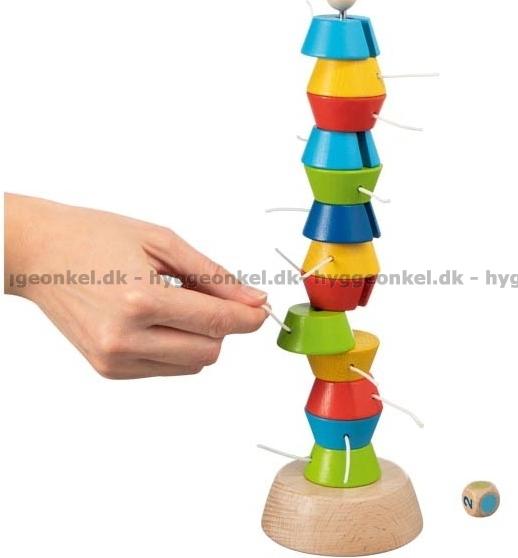 Varje kloss har ett snöre. Tärningen visar vilken färg som man ska försöka att dra ut ur tornet – utan att andra klossar följer med.