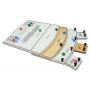 Ett stort spelbräde i trä. Spelet mäter cirka 50 x 30 cm när det är monterat.