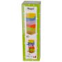 48 träklossar i 6 olika färger (respektive kloss mäter 7,5 x 2,5 x 1,5 cm).