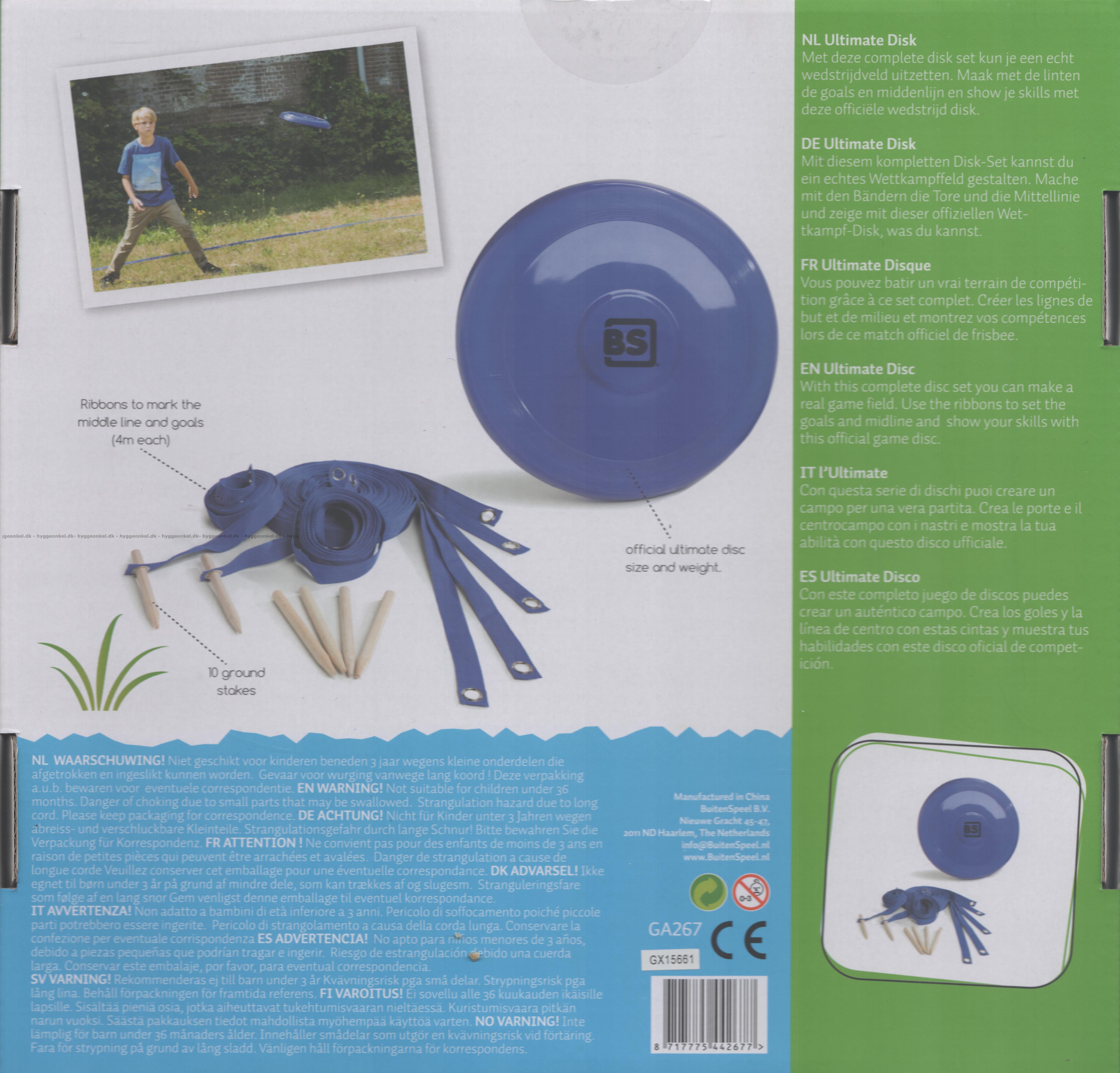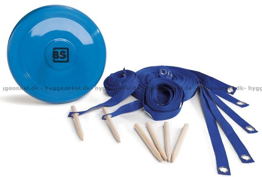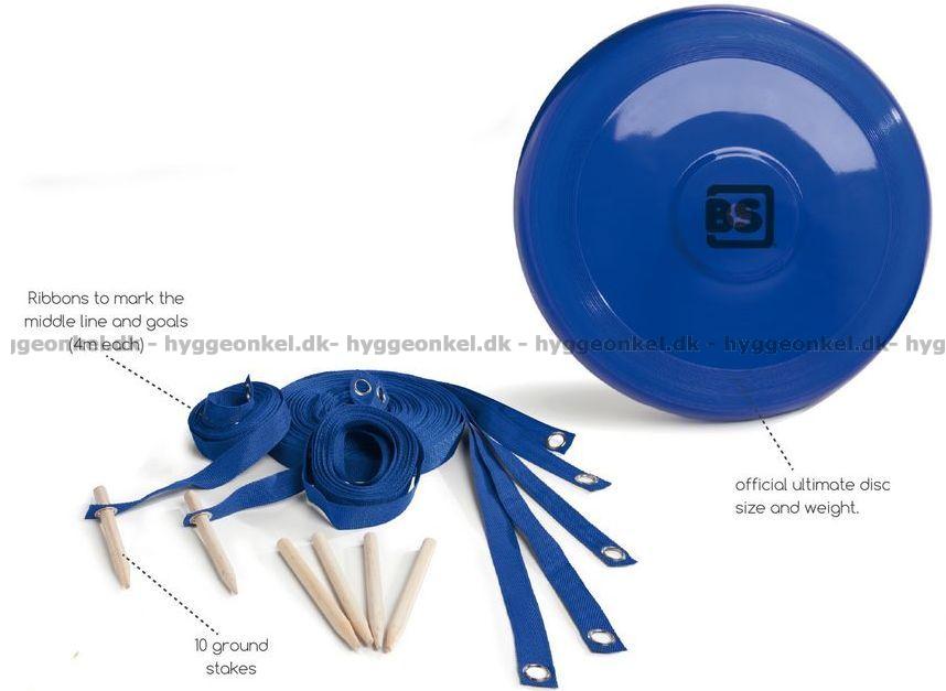 1 frisbee (diameter på 27 cm), mållinje och pinnar för att sätta fast mållinjen.