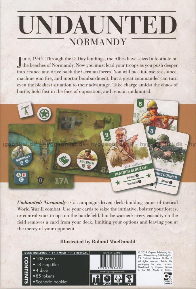 Undaunted: Normandy är ett "deckbuilding"-spel i vilket spelarna kontrollerar en grupp amerikanska eller tyska trupper i en rad händelser som hade betydelse för utfallet i Andra världskriget. Använd dina kort för att ta initiativet, stärk dina trupper eller kontrollera dem på slagfältet. En skicklig ledare kan vända stridens gång till sin favör, men fel beslut kan visa sig vara katastrofala eftersom varje förlust gör att du förlorar ett kort från din hög. Ta kommando i stridens hetta, håll stånd mot din motståndare och var alltid orädd.