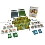 En mängd kort, brickor i kartong, specialtärningar och marker.
