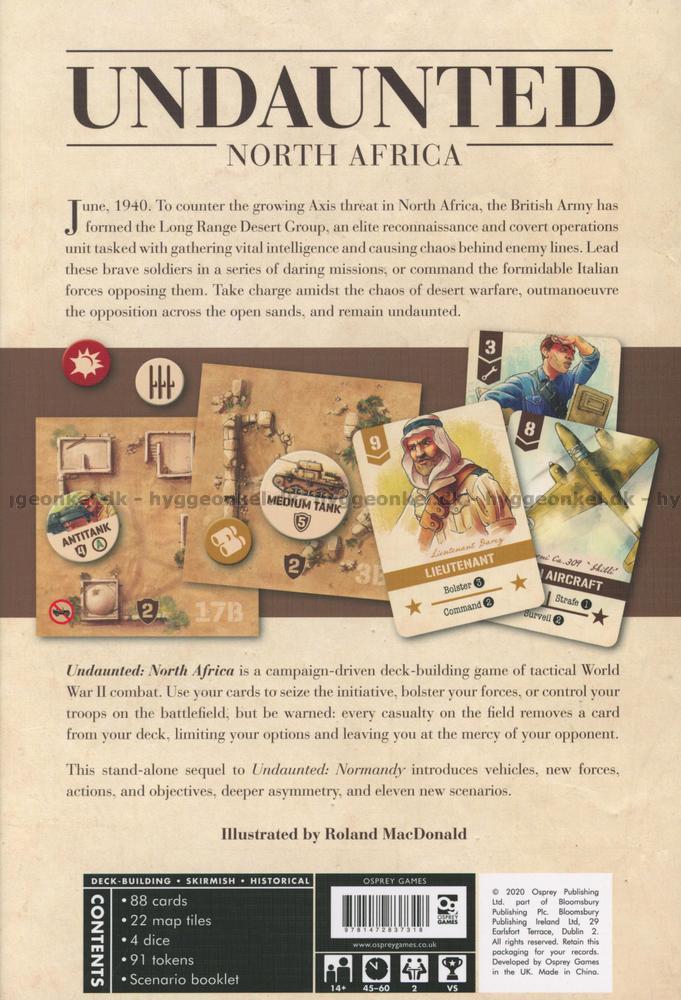 Få inblick i ett stycke historia från det andra världskriget. Tidpunkten är sommaren 1940, då striden om kontrollen över Nordafrika hade blossat upp. Liksom sin föregångare Undaunted: Normandy är Undaunted: North Africa ett "deckbuilding"-spel i vilket man kan ta kommando över olika sidor i kriget.