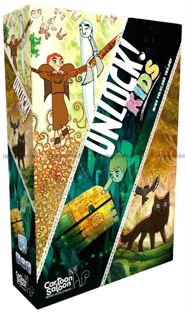 Irish Folklore tar dig med på tre magiska äventyr inspirerade av Irlands rika berättartradition och de prisbelönta animerade filmerna. I Song of the Sea följer du Ben och Saoirse på en resa genom havets hemligheter, där mytiska varelser och gamla legender väcks till liv. I Wolfwalkers kastas du ut i ett äventyr fyllt av skogens hemligheter, där Robyn och Mebh kämpar sida vid sida i en värld mellan människor och vargar. I The Secret of Kells kliver du in bakom klostrets murar och hjälper Brendan att färdigställa en magisk bok, samtidigt som han möter både faror och mirakel i naturen. Spelet kombinerar problemlösning, samarbete och berättande, så att hela familjen kan uppleva spänning, mystik och äkta irländsk folklore vid spelbordet.