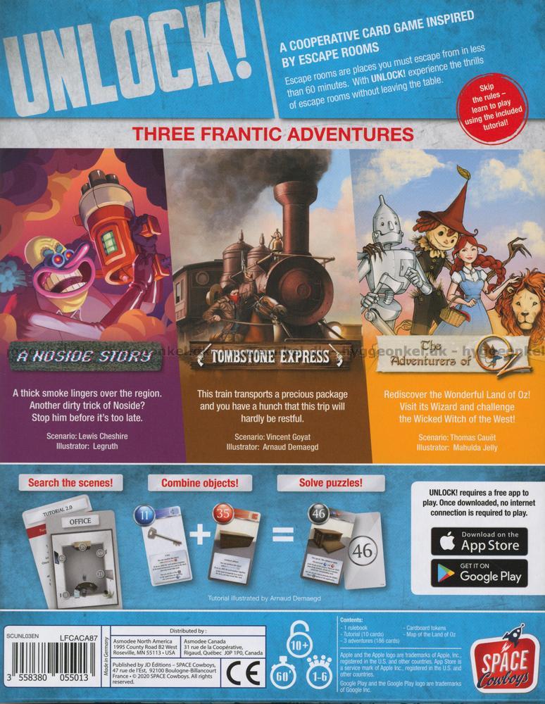 Unlock! är ett kortspel som bygger på samarbete. Det är inspirerat av Escape Rooms och det använder en enkel spelmekanik som låter er söka igenom platser, kombinera föremål och lösa gåtor. Spela Unlock! för att dra ut på fantastiska äventyr vid köksbordet. Det enda ni behöver är korten i spelet samt en app som ger er hints, låter er kontrollera koder samt håller koll på tiden.