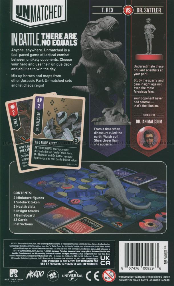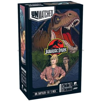 Ännu ett spel i Unmatched-serien – Dr. Sattler tar upp kampen med den skrämmande T-Rex.