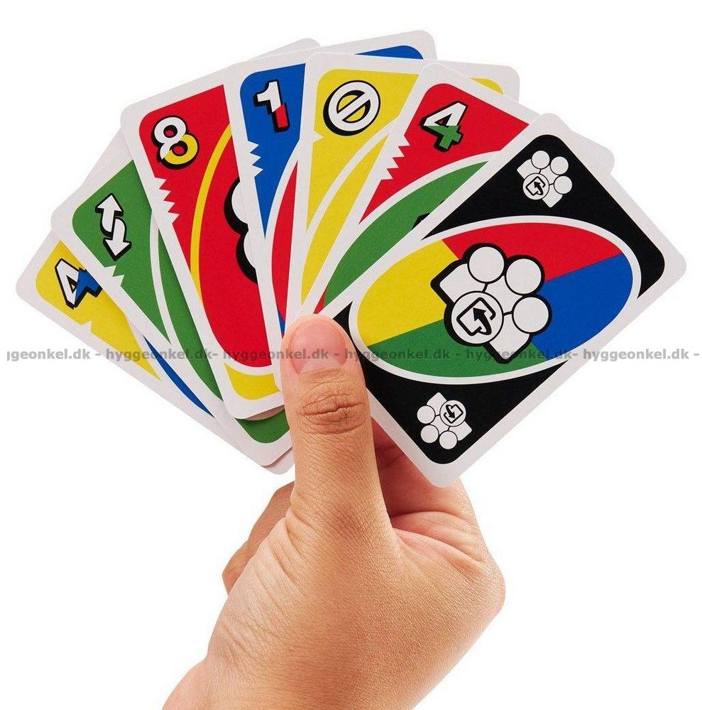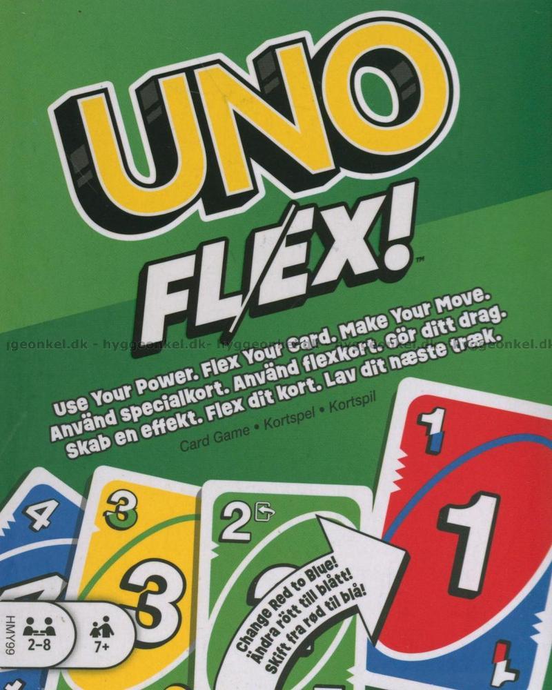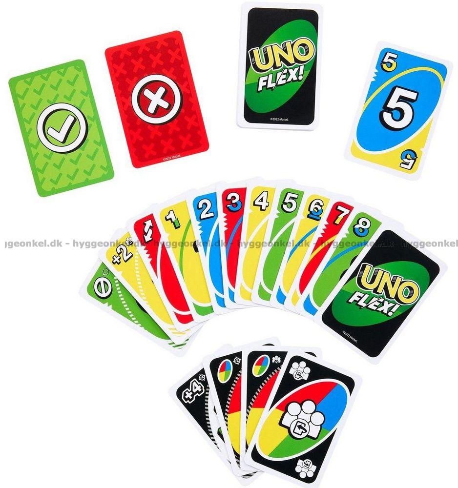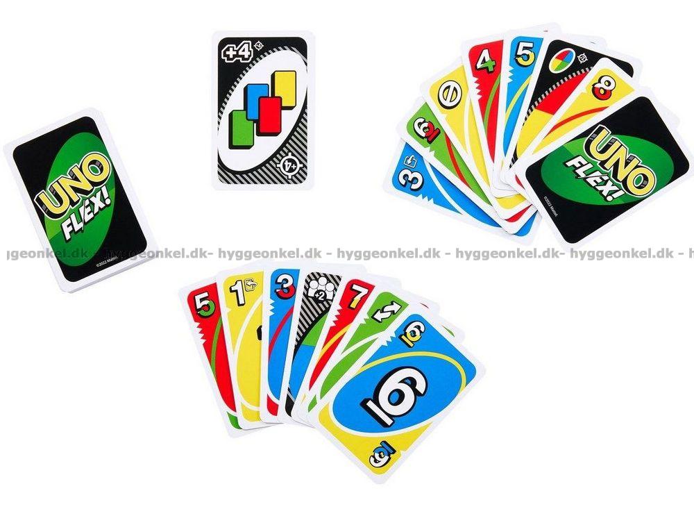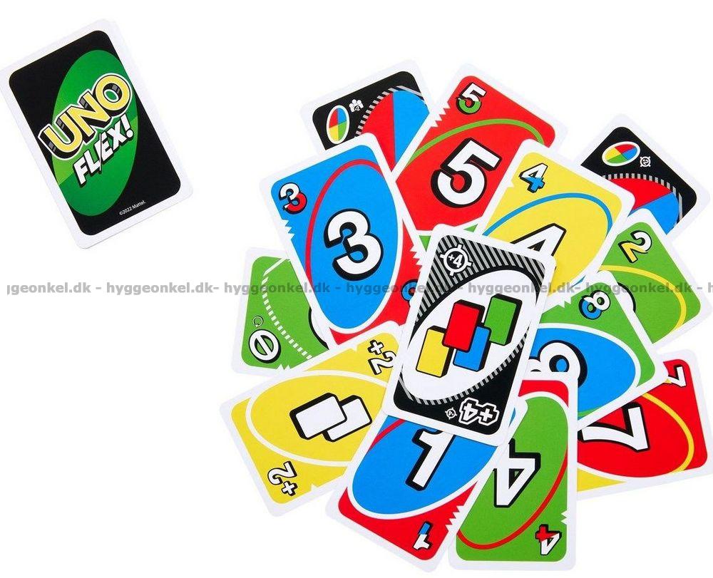 UNO Flex är baserat på det välkända kortspelet UNO – men det finns en twist i form av nya roliga specialkort.