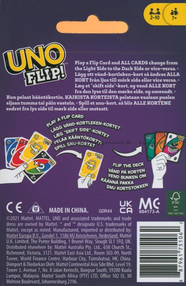 I asken för spelet hittar du 112 dubbelsidiga Uno-kort.