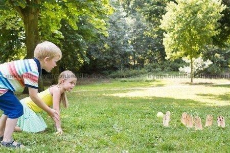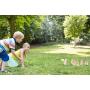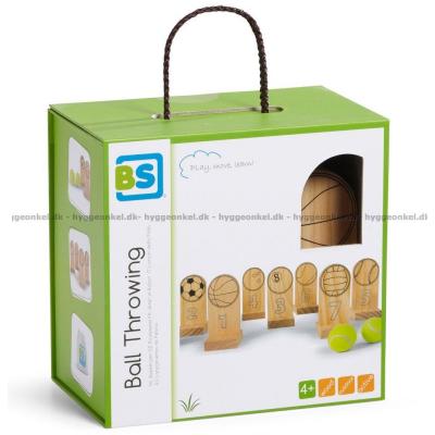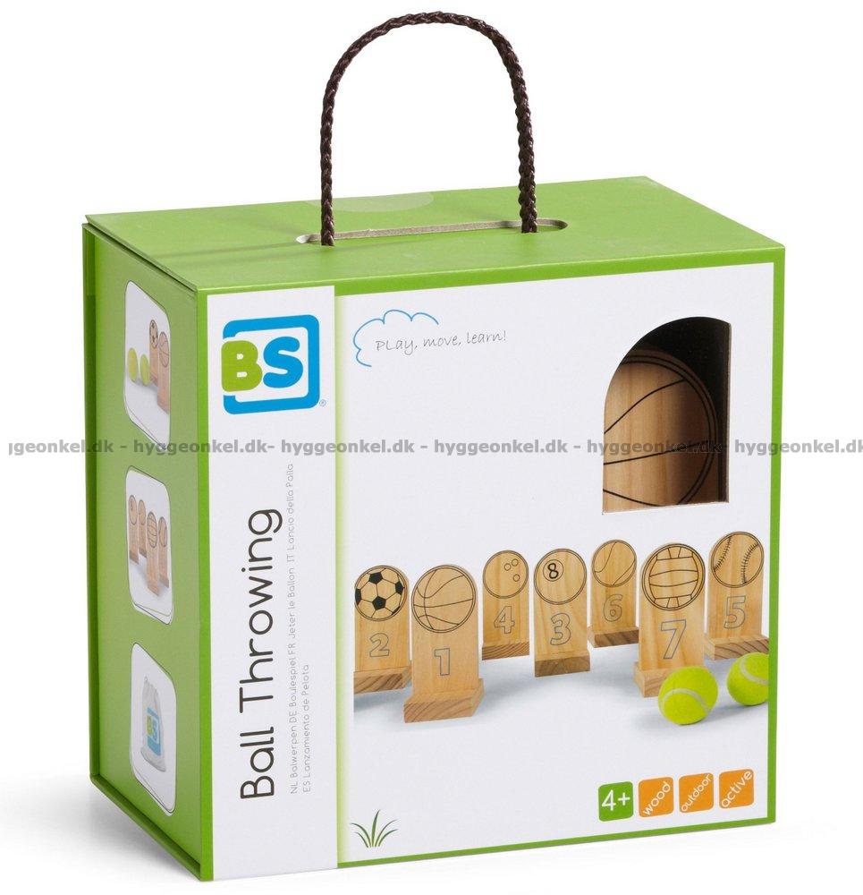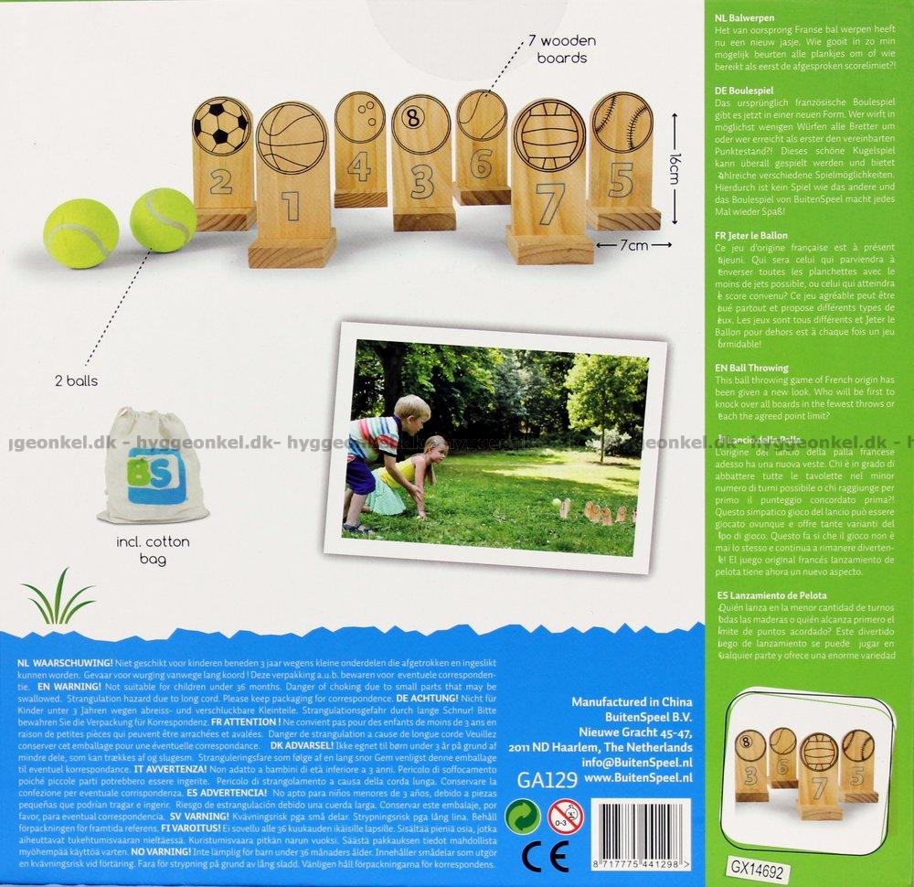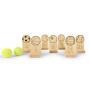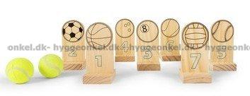 Ställ upp de 7 numrerade träfigurerna och försök att träffa dem med tennisbollarna.