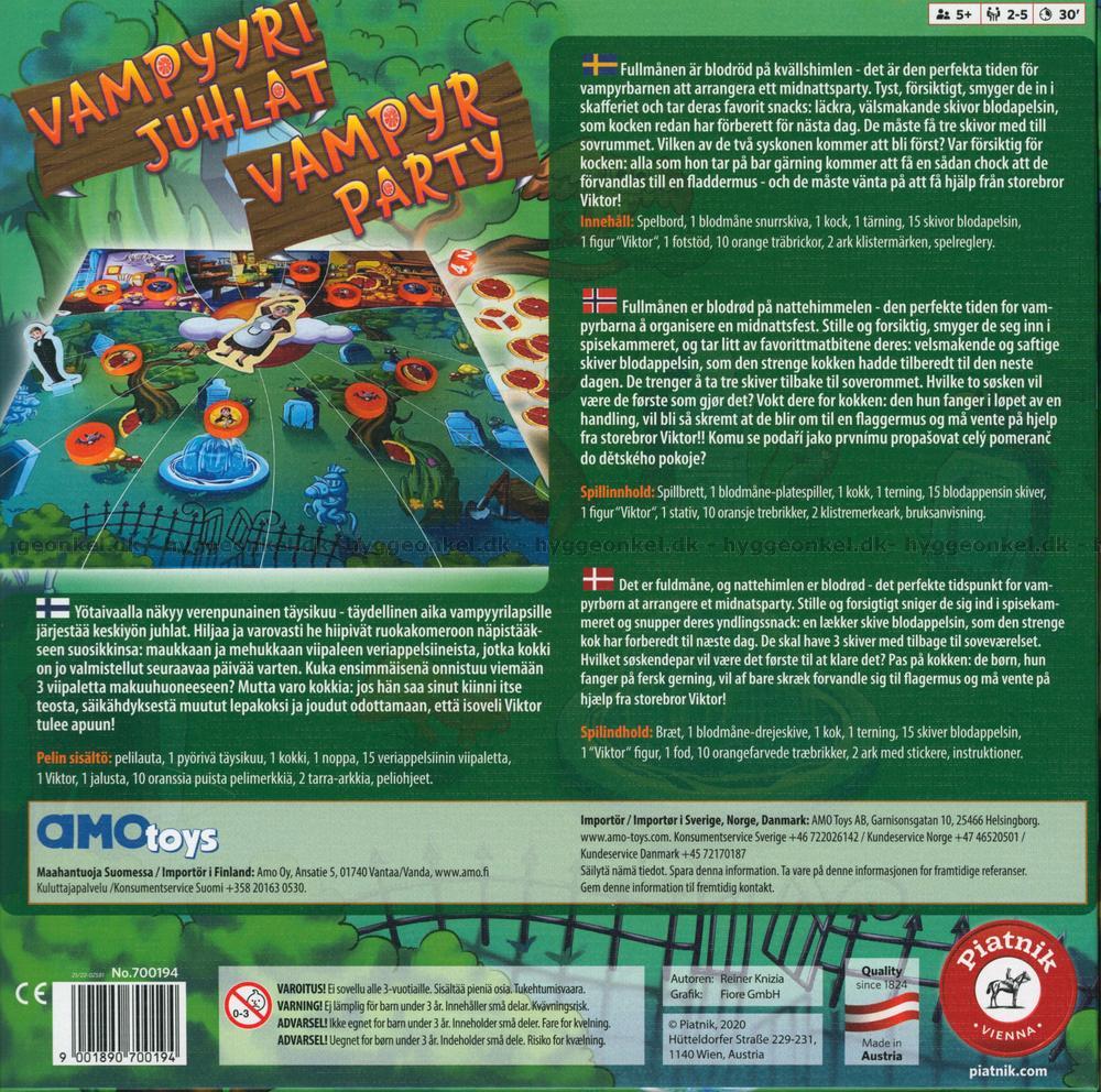 Var försiktig så att ni inte blir upptäckta av kocken. Om så sker förvandlas vampyrbarnen nämligen till fladdermöss och då måste man vänta på hjälp från storebror Viktor.
