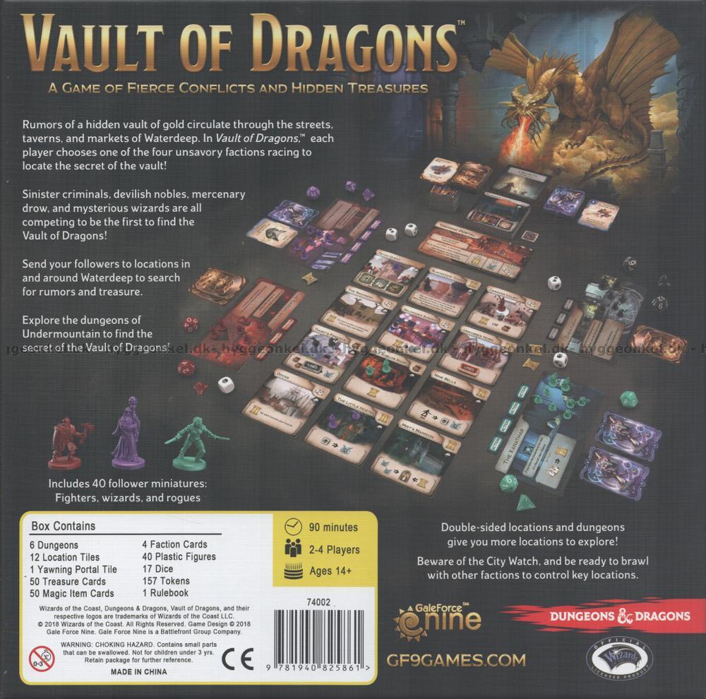 Rykten om att det finns ett gömt rum fullt med guld sprids på gatorna, krogarna och marknadsplatserna i staden Waterdeep. I Vault of Dragons™ styr varje spelare varsin omoralisk fraktion som är på jakt efter skattens hemligheter.