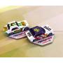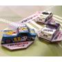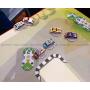 4 bilar i papp och en mängd brickor i papp.