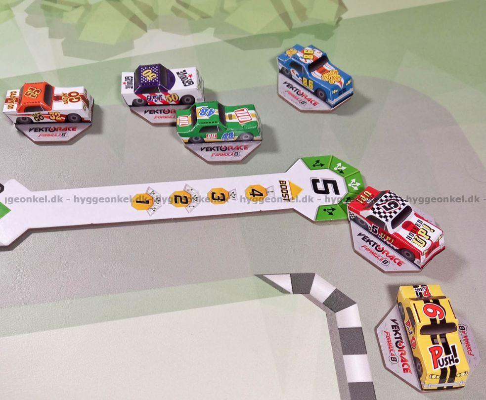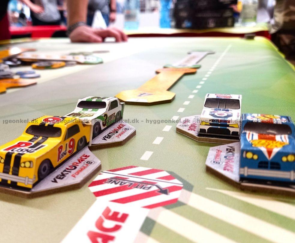Man har varsin bil. Man byter växel, justerar hastighet, riktning, och så vidare genom att använda spelets brickor.