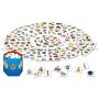 Denna utgåva inkluderar 150 bildkort, spelbräde och 1 behållare för spelkorten.