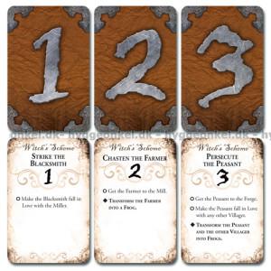 Spelet innehåller en rad kort med uppgifter som ska utföras av häxorna. När ett mål är avklarat får man mellan 1 och 3 poäng beroende på hur svår uppgiften är. Det kan till exempel handla om att man blir ombedd att få byborna att bli kära, att förvandla några av dem till grodor eller att teleportera dem till olika platser i staden.