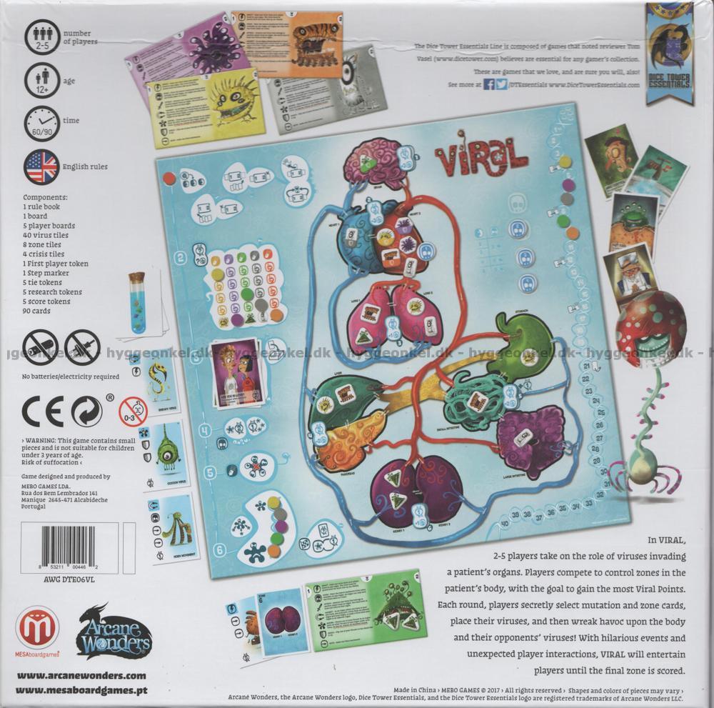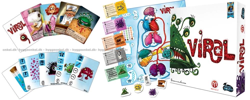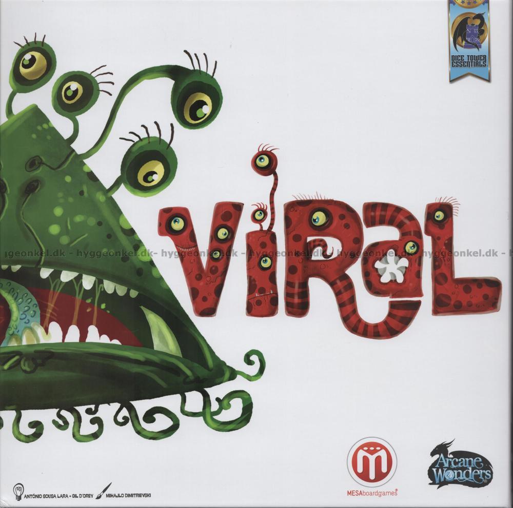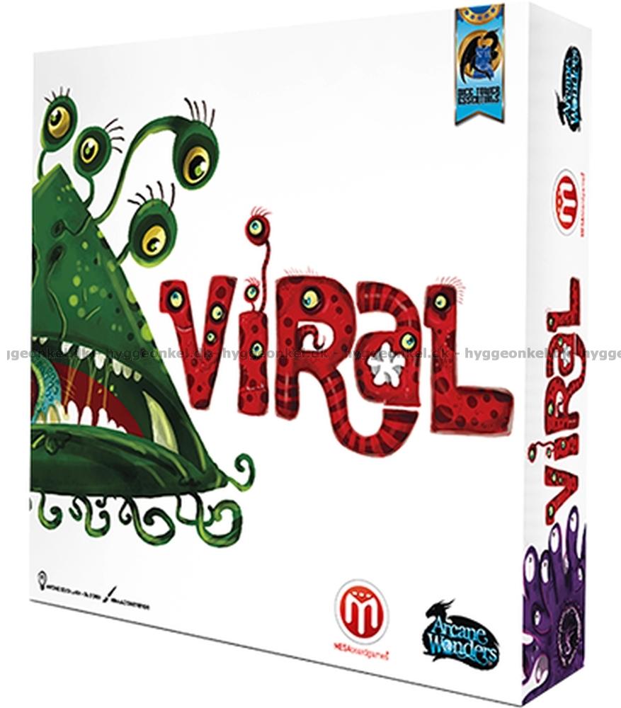 Viral är ett spel för 2-5 spelare. Ni spelar alla som dödliga virus som har smittat en patient. Spelarnas mål är att mutera och ta över värdens organ. Smitta organ, rör er genom kroppen genom vener och artärer och angrip! Om det finns för många virus i ett organ utlöses en kris och värdens immunförsvar utrotar alla virus i det organet. Var noga när du väljer strategi, för läkarna håller på att utveckla ett botemedel och de andra spelarnas virus är hela tiden i vägen för dina planer.